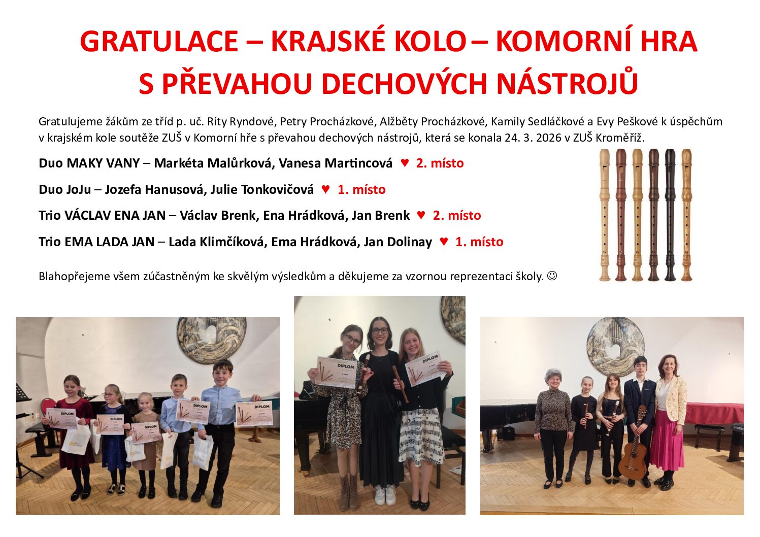 Krajské kolo soutěže ZUŠ – Komorní hra s převahou dechových nástrojů12/04/2026Koncert ke dni maminek12/04/2026 Sdílet